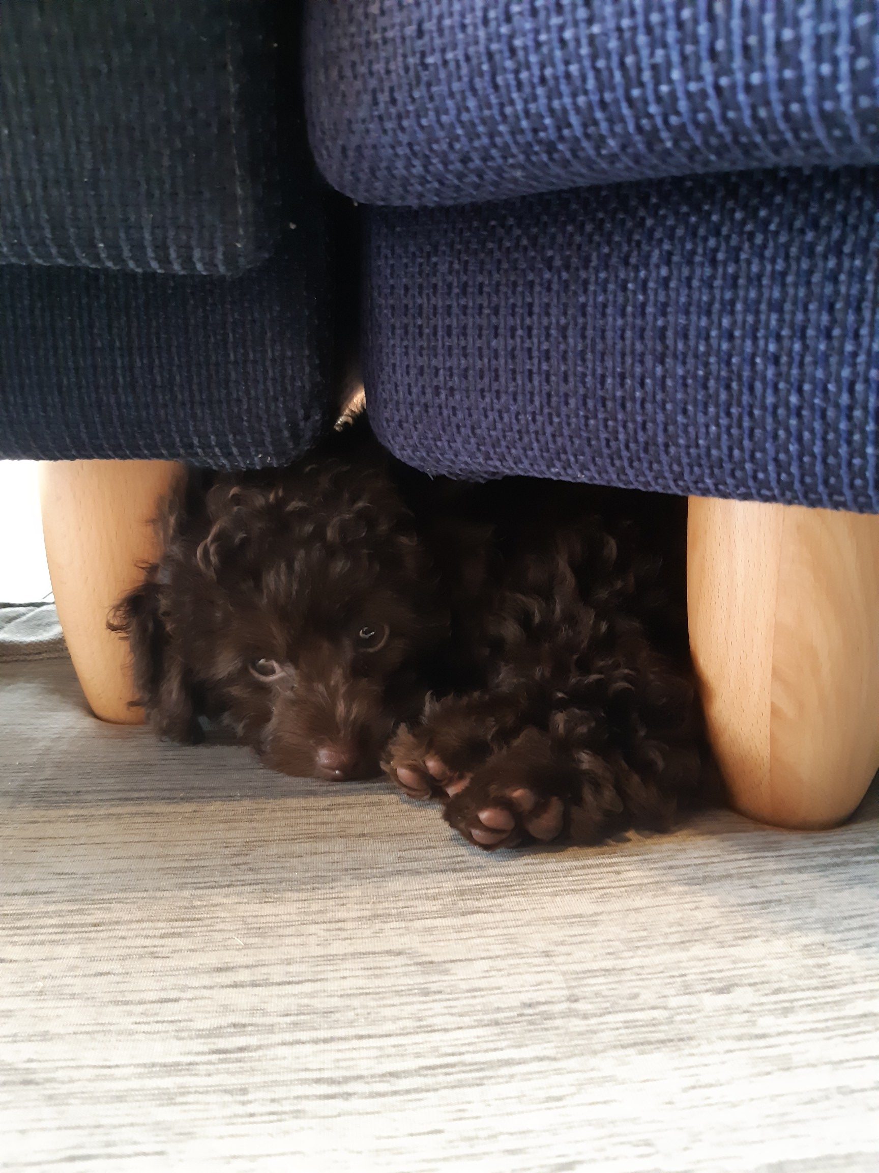今日の様子の写真を送りますね🐶ソファーの下がお気に入り場所になったみたいです😆