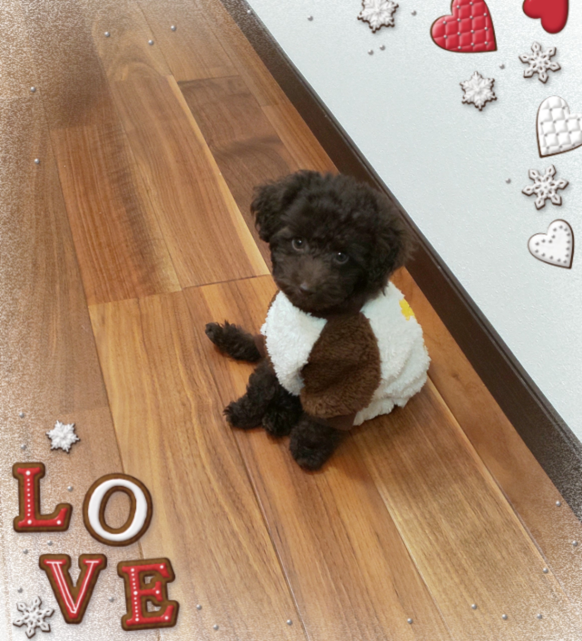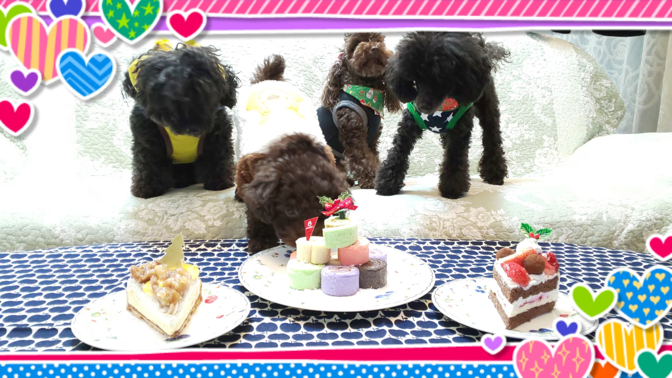 一緒にクリスマスも楽しんで、先住ワンコにも溶け込んでます
