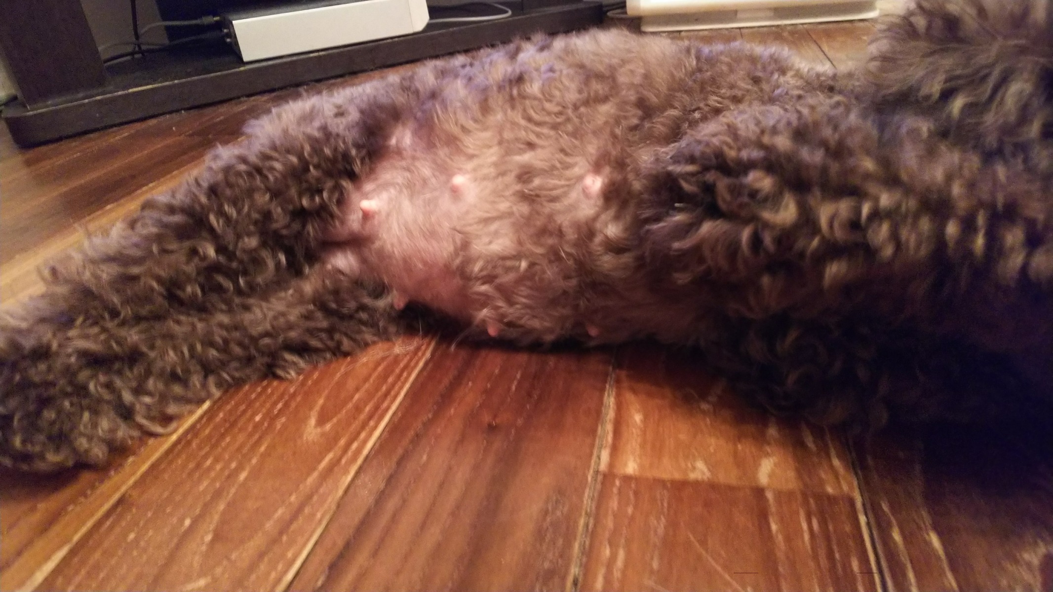 みんなが、ゴロ~ンとする時間です。愛姫ママちゃん、早くもお腹が膨らんできて、