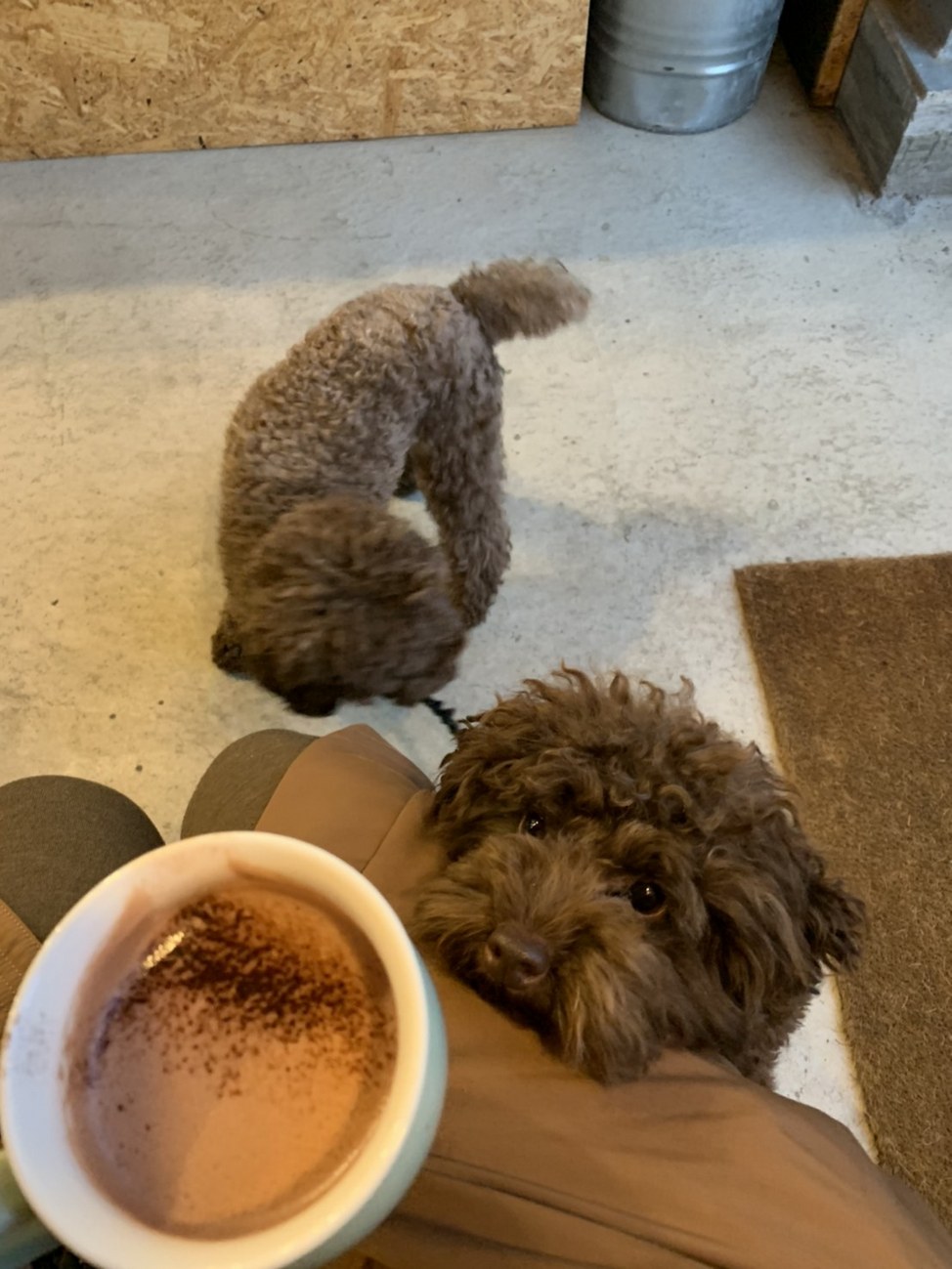 ココアのにおいに、興味深々です