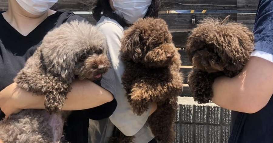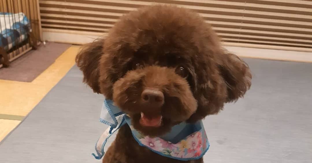 トリミング前とトリミング後の、アモちゃん&トラ君のお写真も送ってくれました![]()