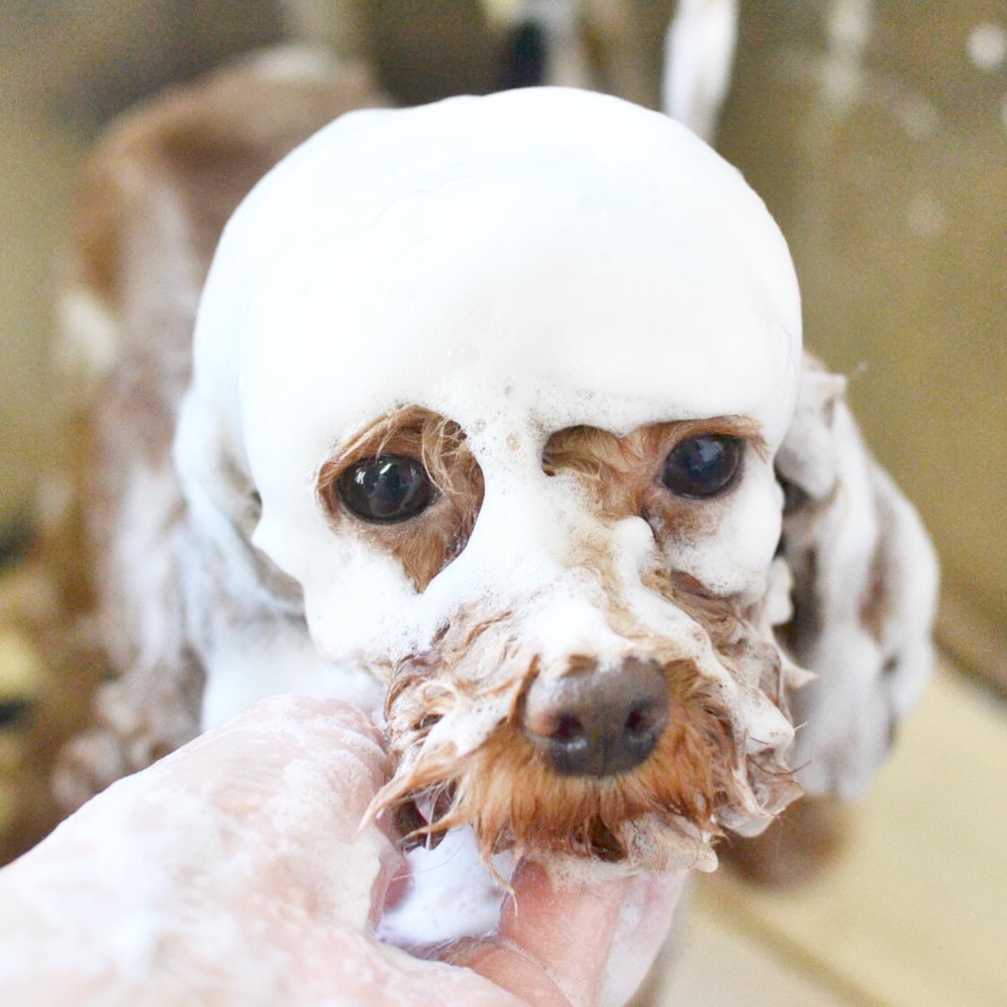 毛質もよくしたいので、今回は、トリミング&泡パック&歯石とりのフルコース![]()