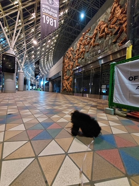 野球のWBCが始まる前日に東京ドームにお散歩デビューでお出かけした、ミロ君